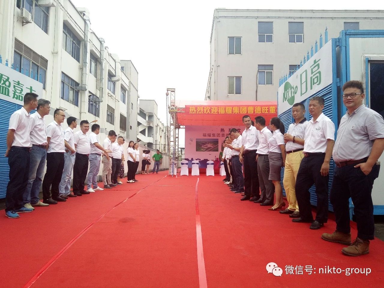 2018年8月17日,日高集團(tuán)喜迎貴賓!福耀集團(tuán)曹德旺董事長、廣東省福建永泰商會蔡桂峰會長等領(lǐng)導(dǎo)一行蒞臨日高集團(tuán)參觀指導(dǎo)!日高集團(tuán)董事長吳衛(wèi)均先生帶領(lǐng)公司全體員工熱烈歡迎福耀集團(tuán)曹德旺董事長等領(lǐng)導(dǎo)們的到來!