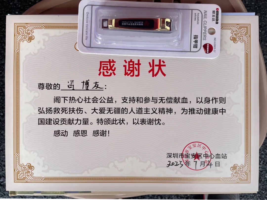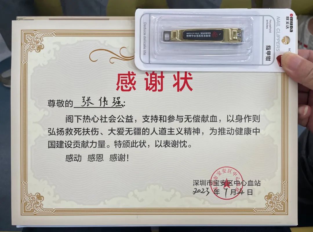 張偉強(qiáng)獻(xiàn)血感謝狀