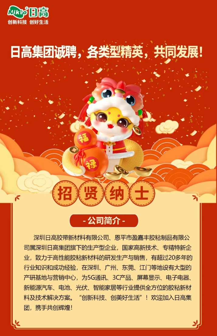 深圳日高膠帶新材料有限公司專業(yè)致力于壓敏膠粘制品研發(fā)與生產(chǎn),有超過20年的行業(yè)知識與成功經(jīng)驗。